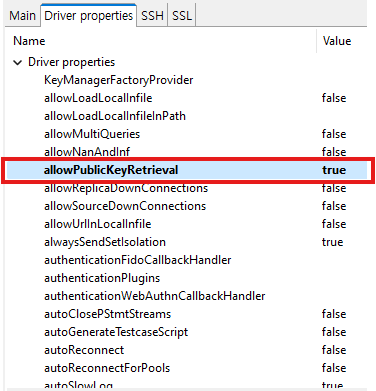 2. allowPublicKeyRetrieval의 value를 true로 바꿔줍니다