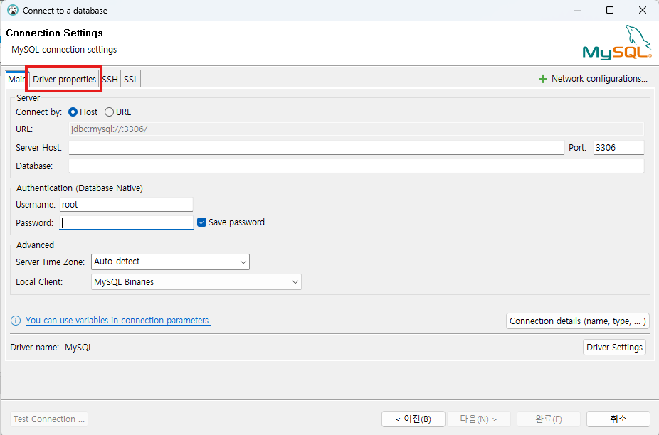 1. Driver properties를 누릅니다.